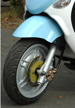 The purely electric E-BUBU is also unique and different from other scooters in both its classical styling and its technology. It has an innovative intelligent dual electric power (IDEP) system and a brand-new dual battery system that uses a lithium-ion battery to store electricity and supply it at a stable rate to a lead-acid battery, which puts out the higher power needed to driver the motor. This design, says the company, prolongs the life of the lead-acid battery by preventing frequent deep discharges while reducing vehicle weight.