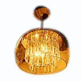 This ceiling lamp features a large dome-shape shade with numerous block-shape crystals dangling from inside. The light can illuminate through the transparent shade and deliver strong brightness. The round lamp shade helps to create an even illumination and light up the whole room.