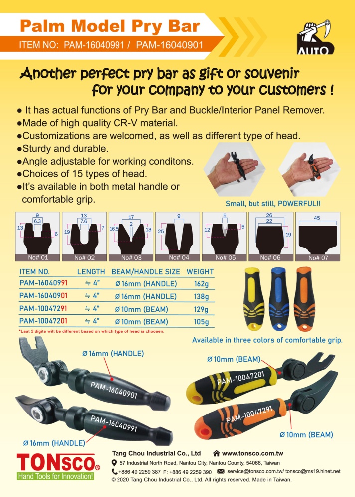 Contact information Company: TANG CHOU INDUSTRIAL CO., LTD. Telephone:886-49-225-9387 Fax:886-49-225-9390