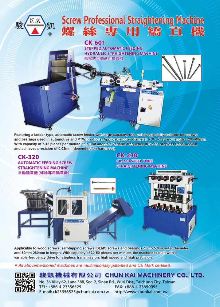 Contact information Company: CHUN KAI MACHINERY CO., LTD. Telephone:886-4-2335-6525/7 Fax:886-4-2335-9095