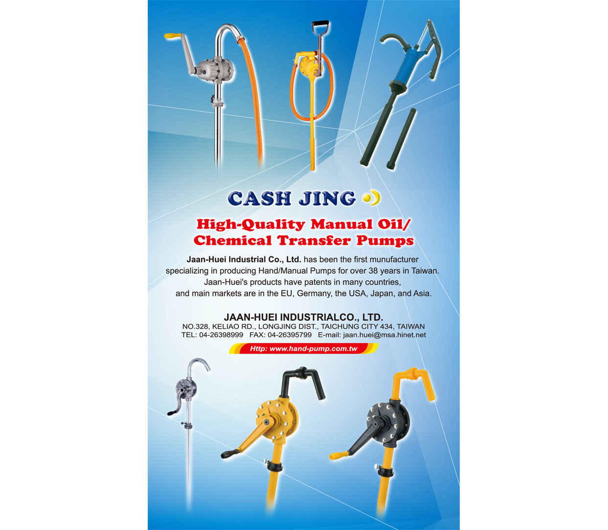 Contact information Company: JAAN HUEI INDUSTRIAL CO., LTD. Telephone:886-4-2639-8999 Fax:886-4-2639-5799