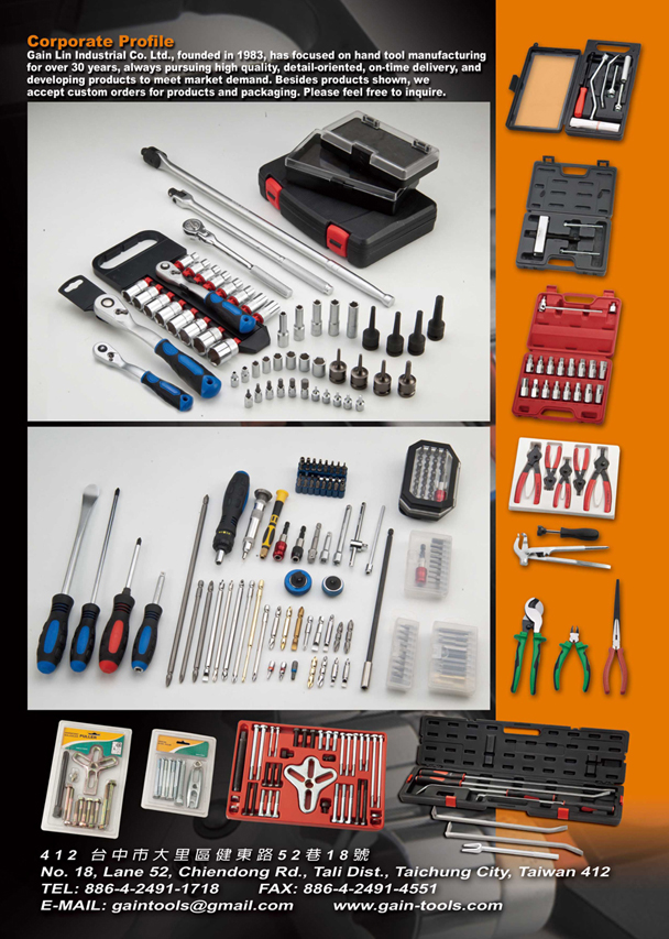 Contact information Company: GAIN LIN INDUSTRIAL CO., LTD. Contact Person: 何俊廷 (總經理) Telephone:886-4-2491-1718 Fax:886-4-2491-4551