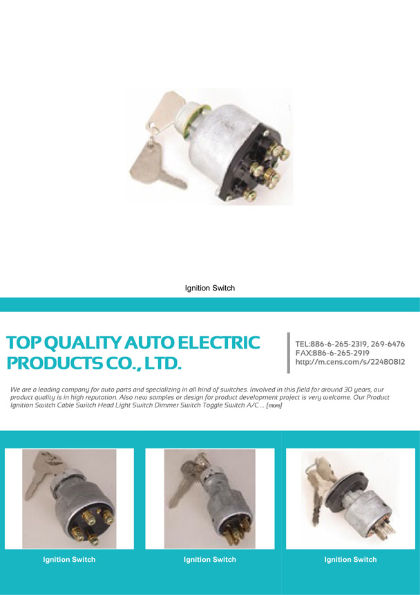 Contact information Company: TOP QUALITY AUTO ELECTRIC PRODUCTS CO., LTD. Telephone:886-6-265-2319 Fax:886-6-265-2919