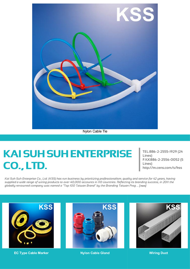 Contact information Company: KAI SUH SUH ENTERPRISE CO., LTD. Telephone:886-2-2555-1929 (24 Lines) Fax:886-2-2556-0052 (5 Lines)