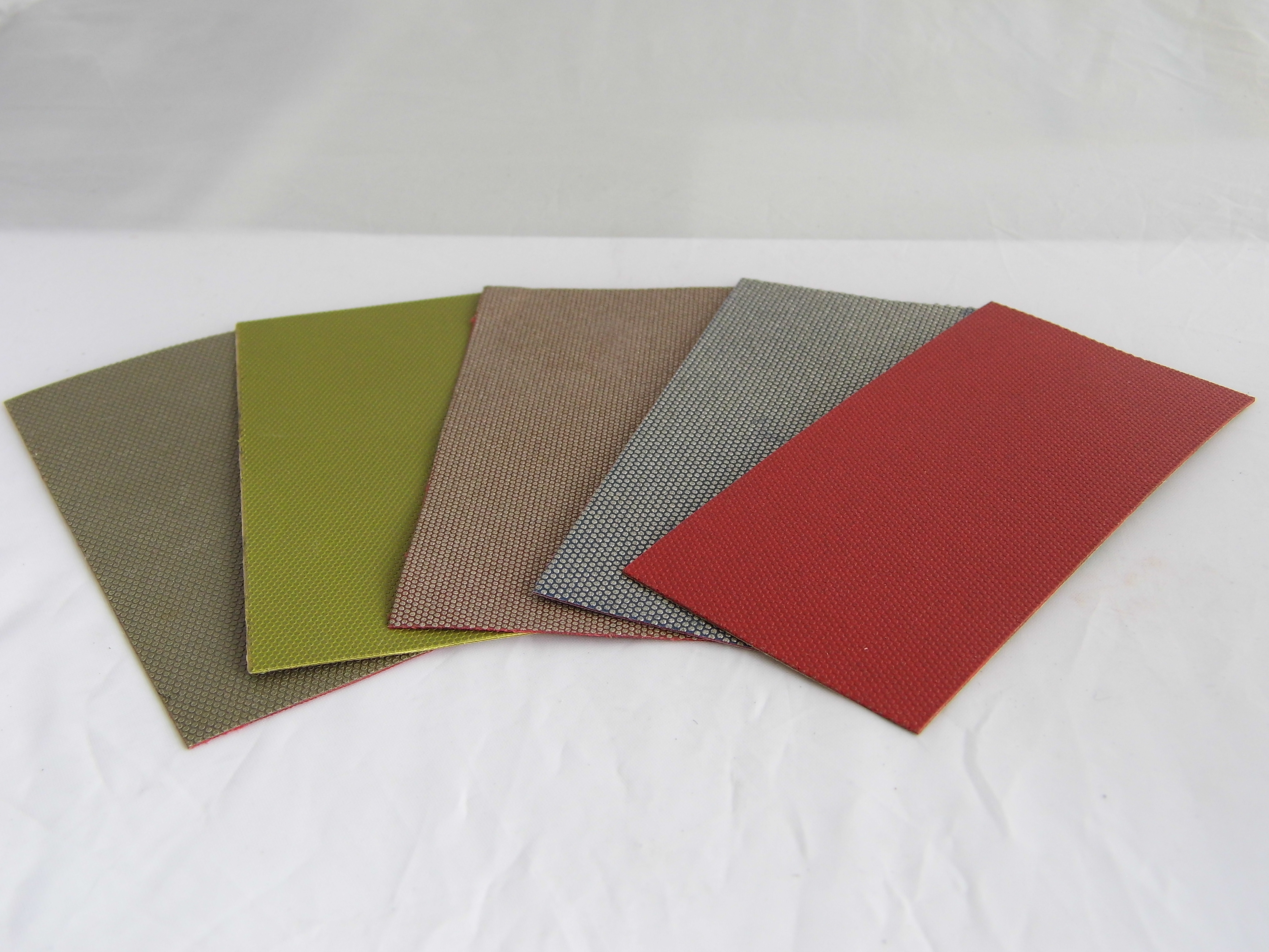 钻石砂布基材用棉布基材制作,钻石表面图案有网点状以利排屑,有电镀及树脂结合剂.