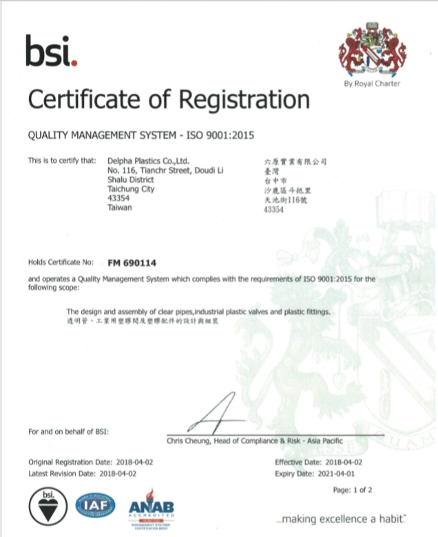 榮獲英國標準協會BSI之 ISO 9001 品質認證。