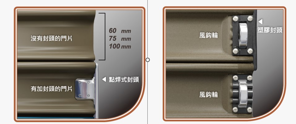 ▌抗風捲門(防颱捲門)︰專為抵禦強風設計,適合風力較強的地區,會包含更多抗風裝置,例如