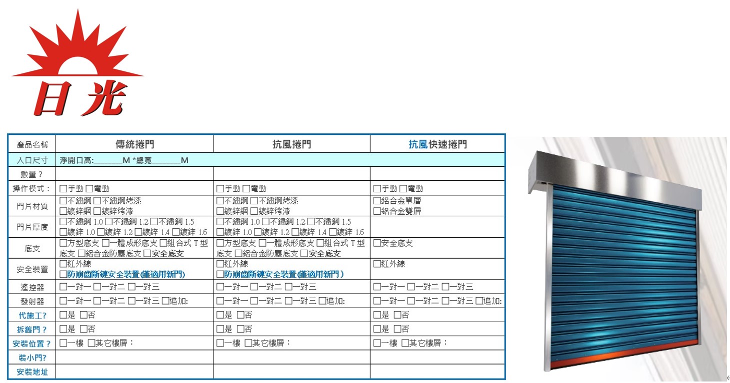 金山日光牌快速捲門產品特色