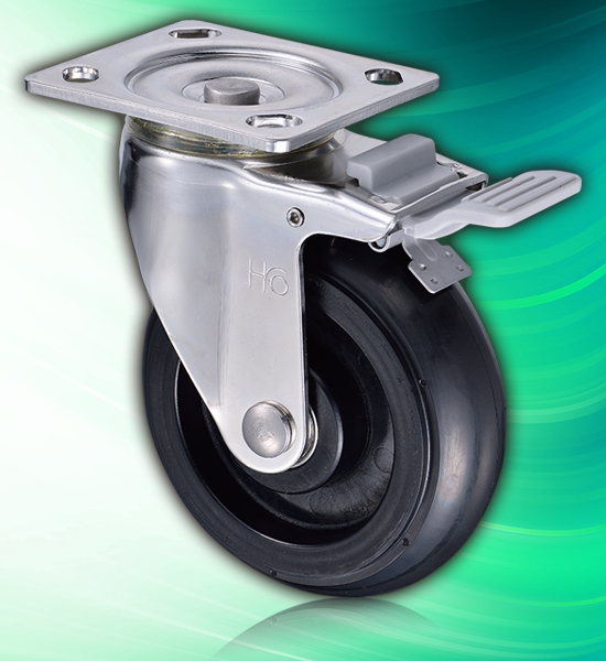 6吋彈力橡膠剎車不鏽鋼腳輪(6x2")